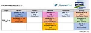 die Rückenwindkurse mit einem Unterstützungangebot in verschiedenen Hauptfächern für die Klassenstufen 5-9 können bis mindestens Ende April fortgesetzt werden. Die Übersicht informiert über das Angebot.